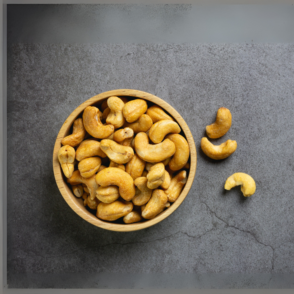 Roasted Cashews are made by slow-roasting premium cashew nuts to enhance their natural taste and crunch.They are rich in healthy fats, proteins, vitamins, and minerals like magnesium and zinc. Ideal as a snack or party treat, they offer both taste and nutrition in every bite.
